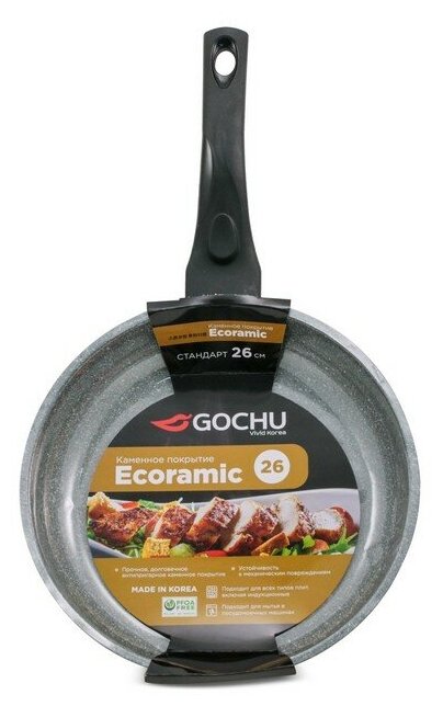 Сковорода Gochu Ecoramic 26 см стандарт с каменным покрытием для всех видов плит без крышки интересное: