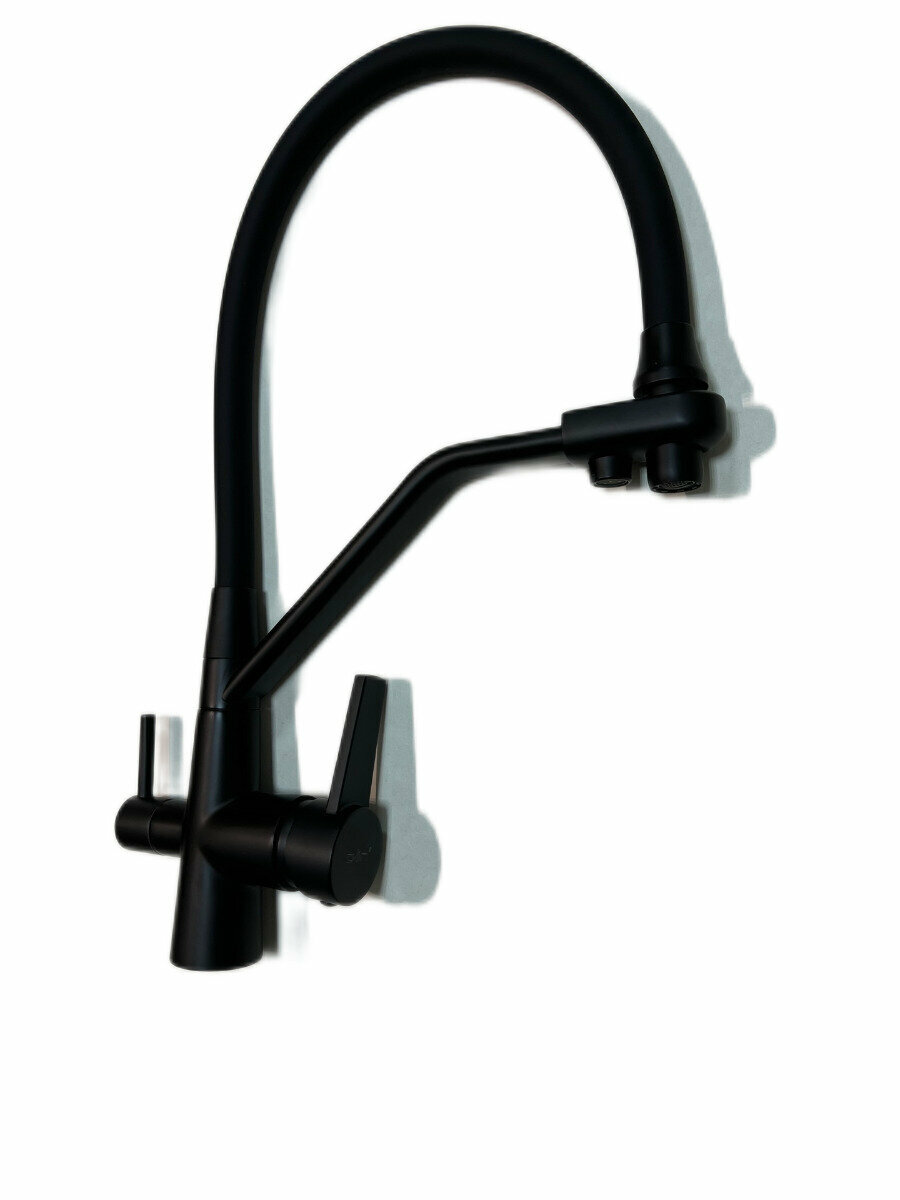 Смеситель для кухни D-lin D159317-A с фильтром для питьевой воды, гибким поворотным изливом, черный (матовый)