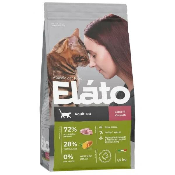 Купить Корм сухой Elato для взрослых кошек Holistic с ягненком и олениной, полнорационный, 1,5 кг
