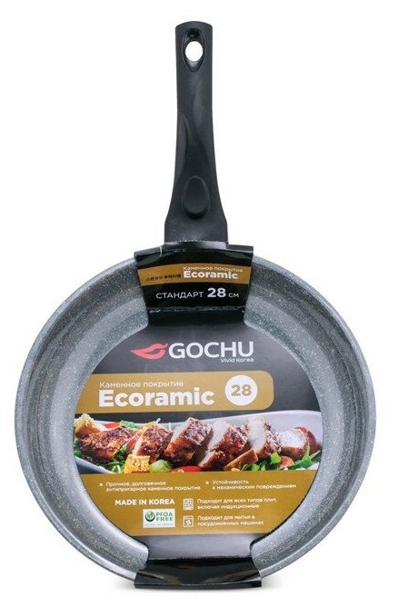Сковорода Gochu Ecoramic 28 см стандарт с каменным покрытием для всех видов плит без крышки интересное:
