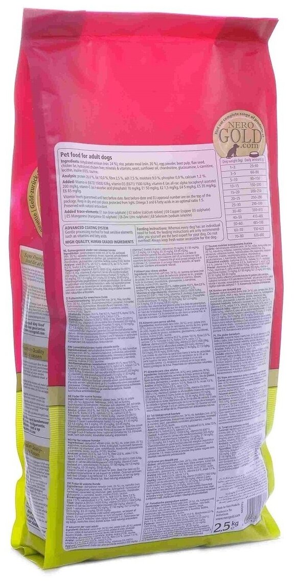 Купить NERO GOLD super premium Для Взрослых собак c Олениной и сладким картофелем (Venison Potato 2010) 2,5 кг 10072 (1 шт)
