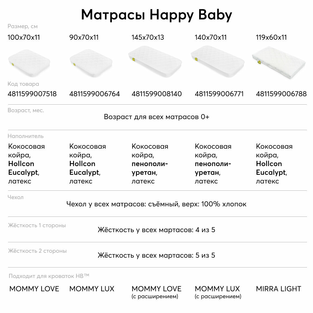 95021, Матрас детский 100х70 см Happy Baby для новорожденных, для кроватки MOMMY LOVE, белый интересное: