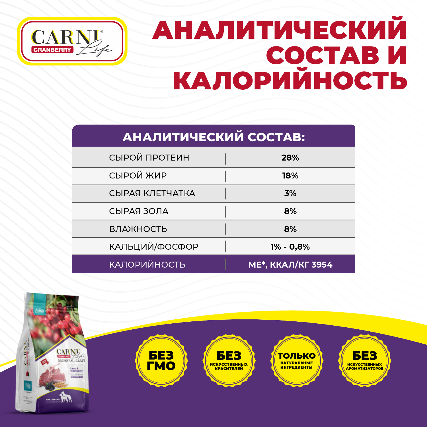 Сухой корм Carni Life Medium/Maxi (Карни) для взрослых собак средних и крупных пород, ягненок с ежевикой и клюквой 2,5 кг