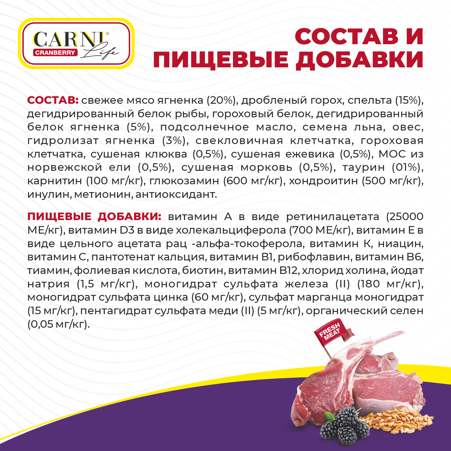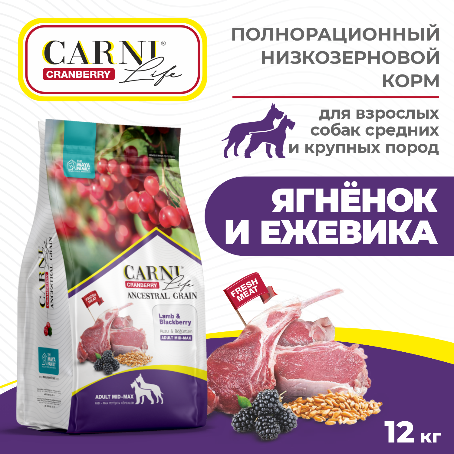 Купить CARNI LIFE Medium Maxi ягн. с ежевикой и клюквой 12кг для собак сред.и круп.пород