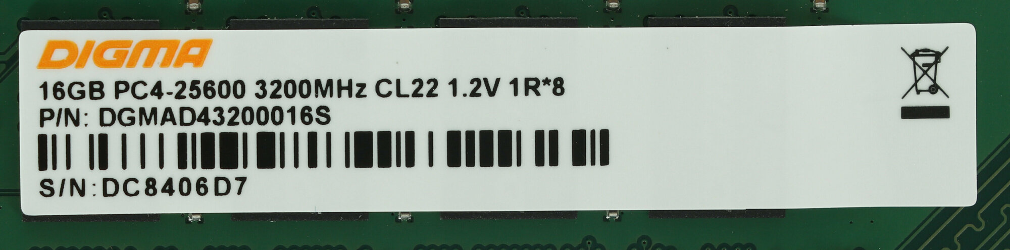 Модуль памяти 16G Digma DGMAD43200016S DDR4, DIMM, PC4-25600, 3200MHz