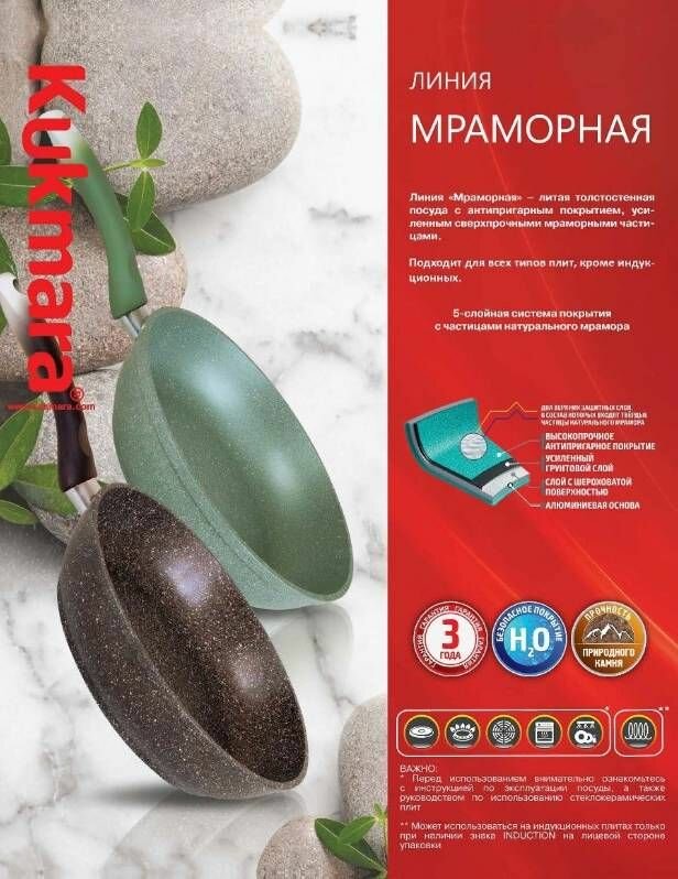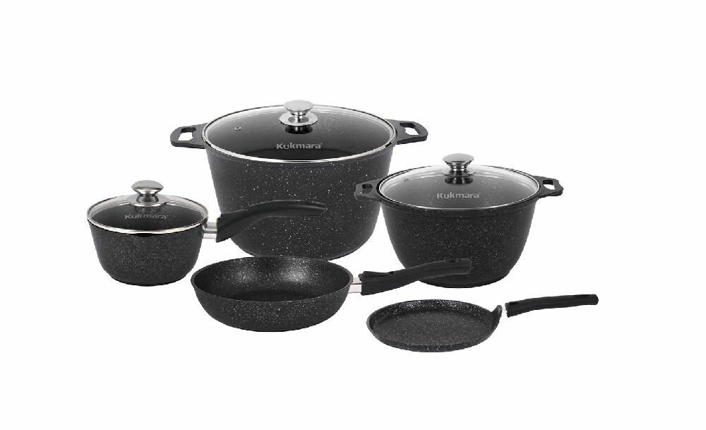 Набор кухонной посуды №6 с антипригарным покрытием, Kukmara нкп06мт линия "Мраморная" (темный мрамор)