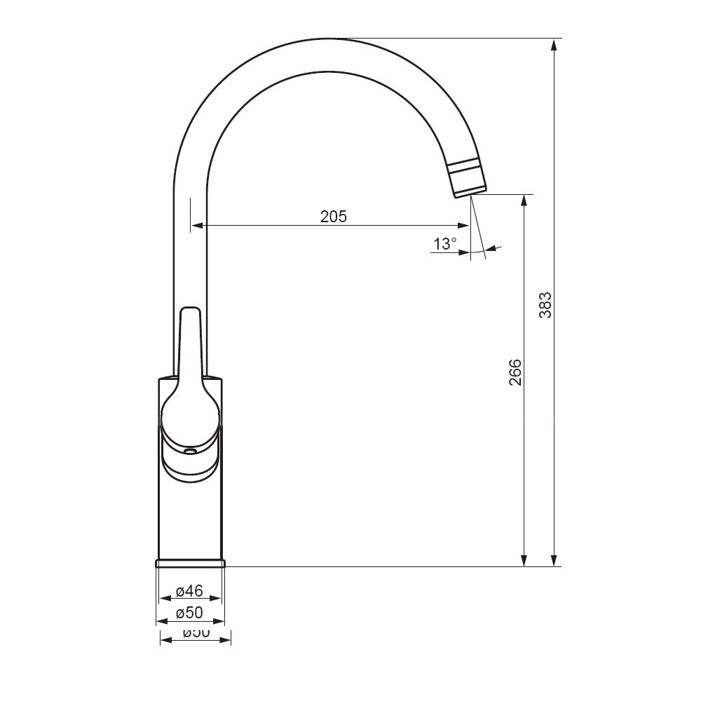 | Длина излива | 205 мм |
