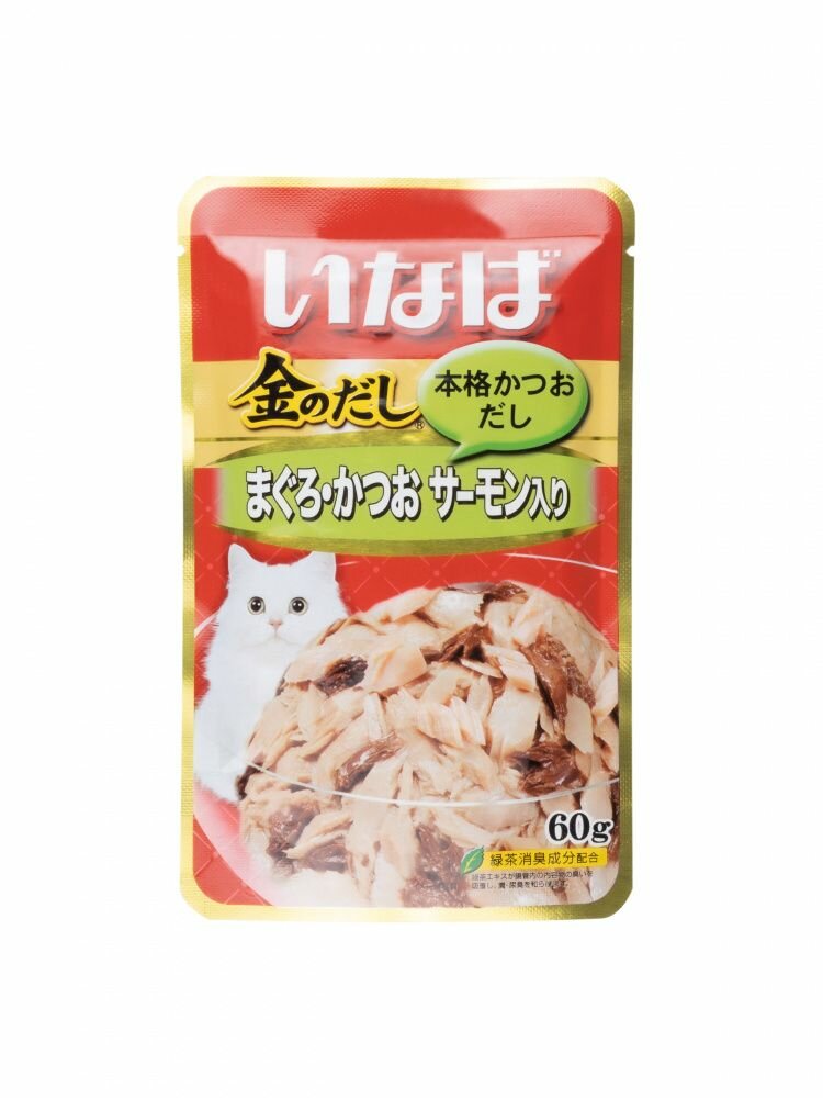 Влажный корм для кошек Inaba Kinnodashi, с тихоокеанским тунцом и сёмгой, паучи, 12шт х 60 гр