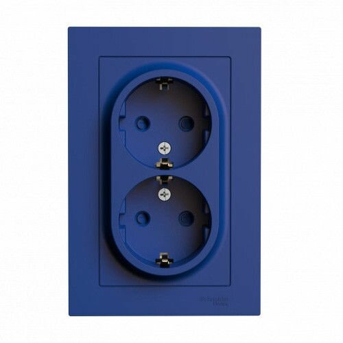 Купить ATLASDESIGN розетка двойная с заземлением со шторками, 16А, в сборе, аквамарин