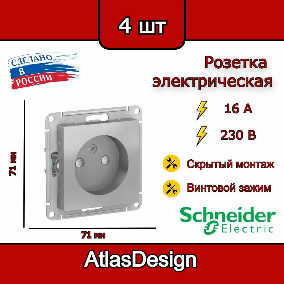 Розетка одинарная 4 шт AtlasDesign 16A IP20 механизм розетки с заземлением и защитными шторками Schneider Electric/ Systeme Electric евророзетка скрытый монтаж белый