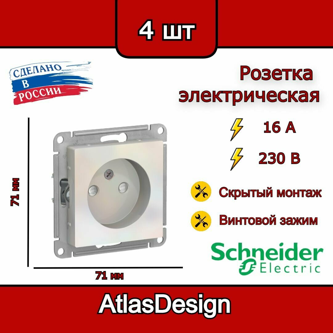 Розетка одинарная 4 шт AtlasDesign 16A IP20 механизм розетки с заземлением и защитными шторками Schneider Electric/ Systeme Electric евророзетка скрытый монтаж белый