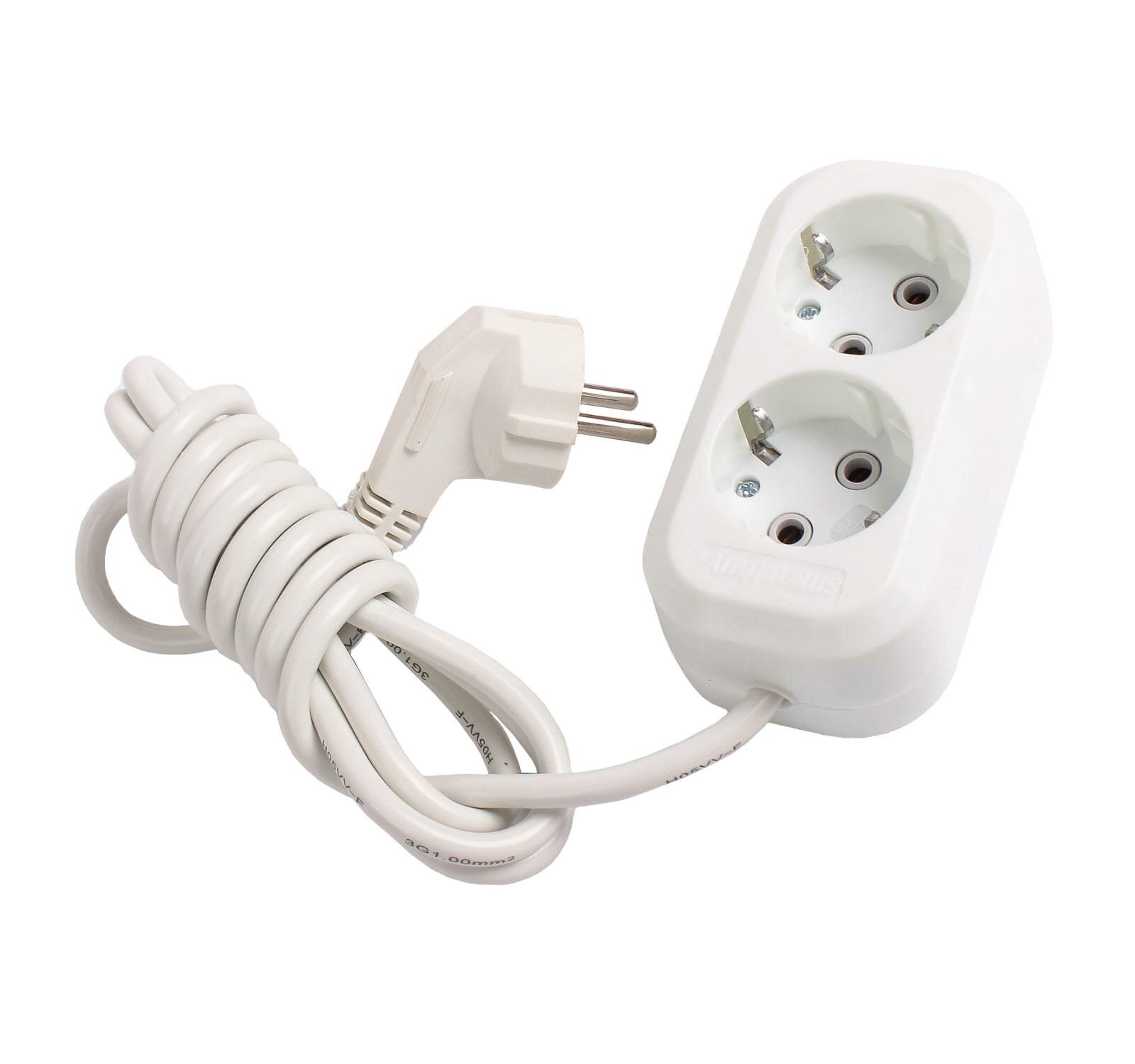 Удлинитель 2 розетки, 1.7 м, 6 А, ПВС 2х0.75 мм2, без з/к, белый