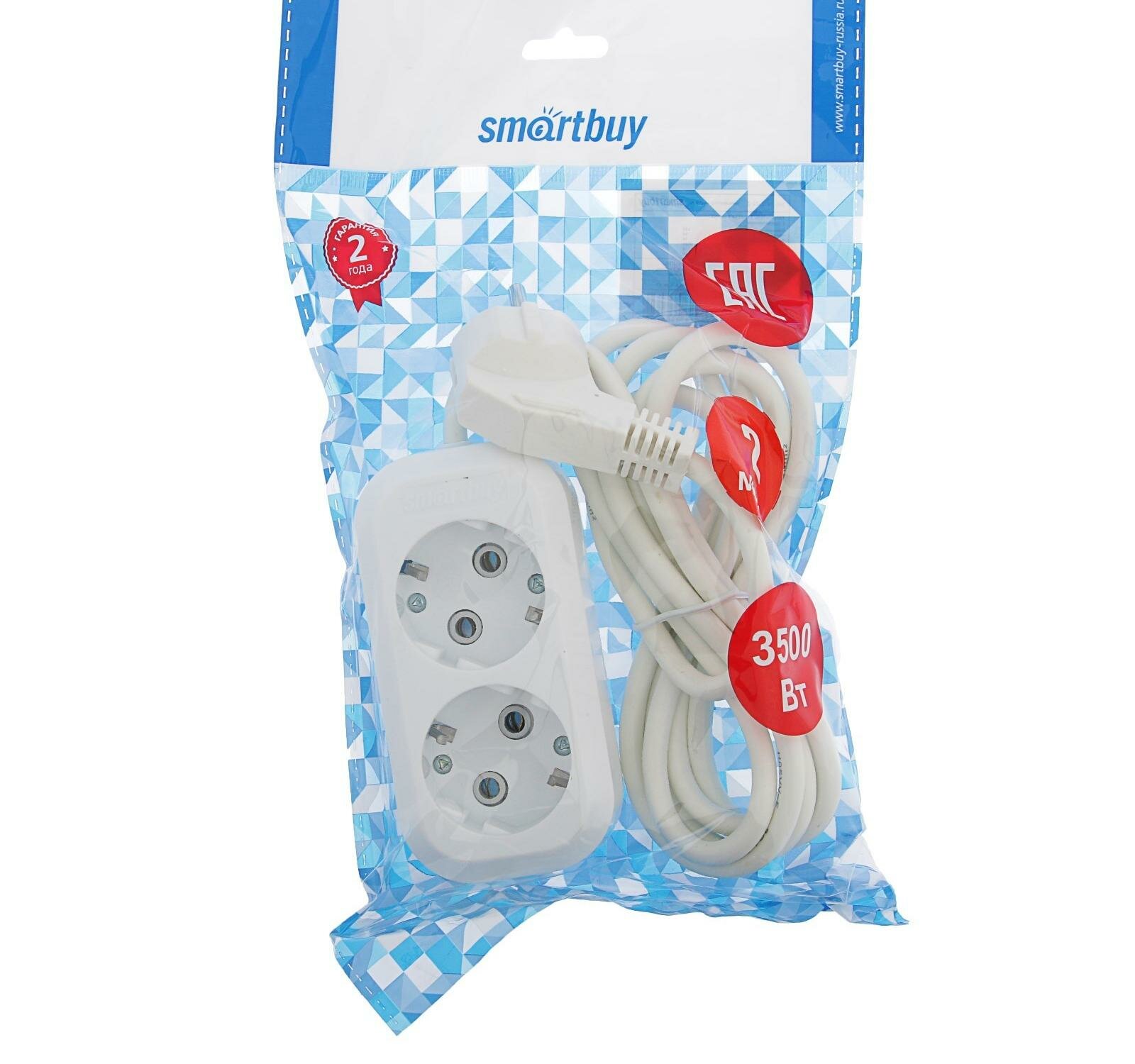 Удлинитель SmartBuy SBE-10-3-02-N/SBE-10-3-03-N/SBE-10-3-05-N, 3 розетки, б/з, 10А / 2200 Вт белый 2 м 3