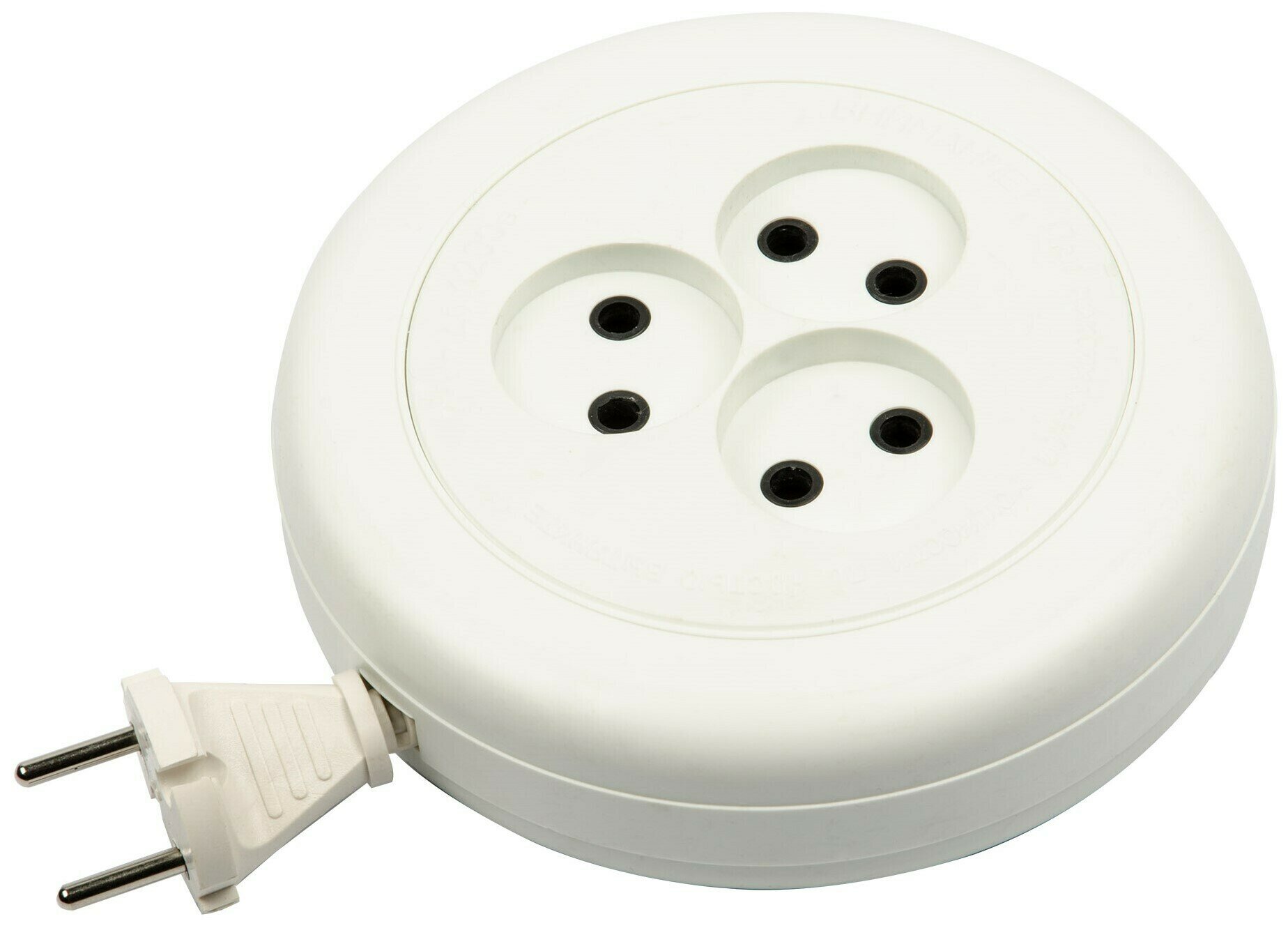 Удлинитель-рулетка 3 розетки, 3 м, 6 А, 1300 Вт, ШВВП 2х0.75 мм2, без з/к, белый