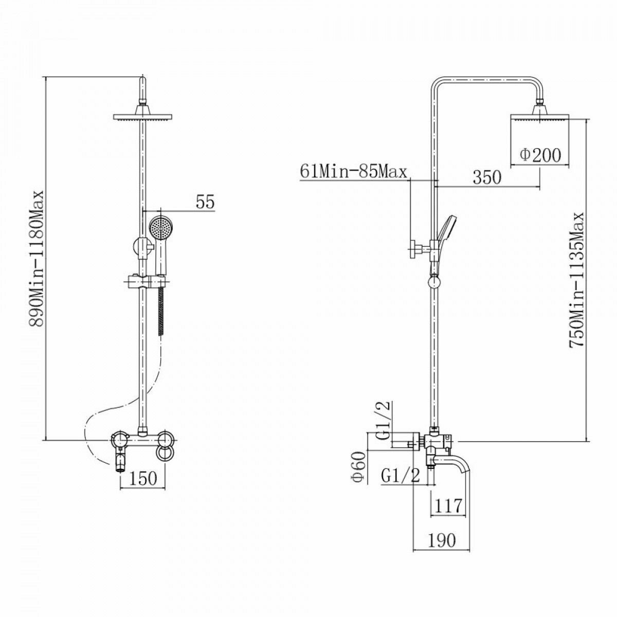 | Комплектация | верхний душ - 1 шт / держатель для лейки - 1 шт / душевая лейка -1 шт / душевая штанга - 1 шт / шланг для душа - 1 шт / кронштейн для верхнего душа - 1 шт. |
