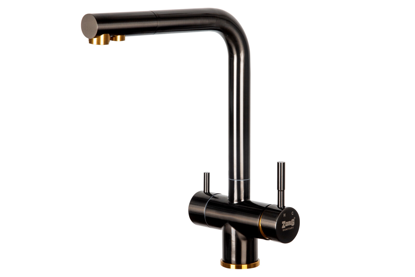 Смеситель для кухни ZorG однорычажный под фильтр SZR-7039 BR/GRAFIT бронза графит черный, нержавеющая сталь с PVD
