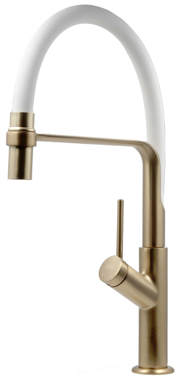 Купить Смеситель для кухни ESKO K50GW с гибким изливом, латунь, золотистый, белый