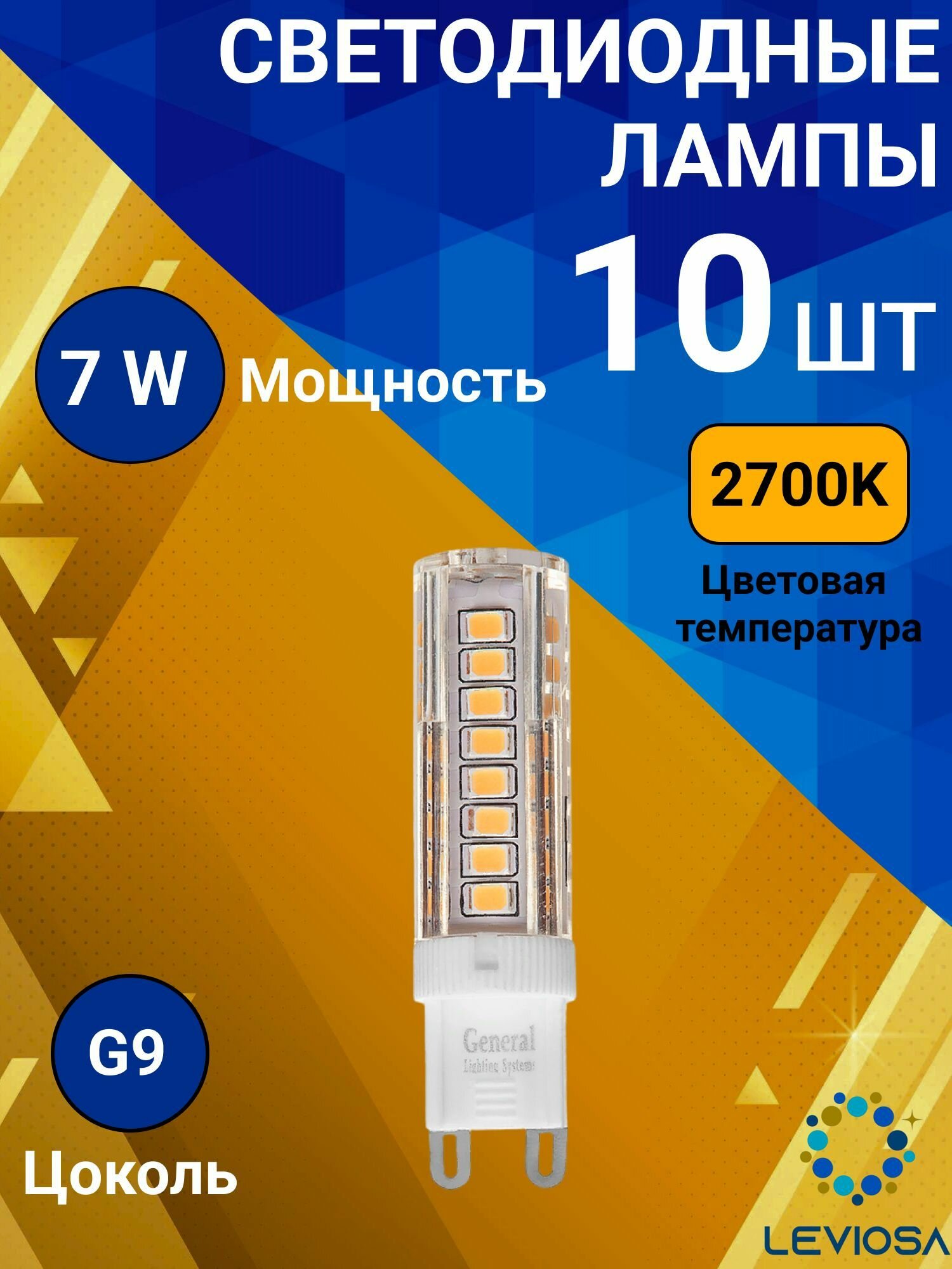 Светодиодные лампы, General, Комплект из 10 шт, Мощность 7 Вт, Цоколь G9, Теплый свет