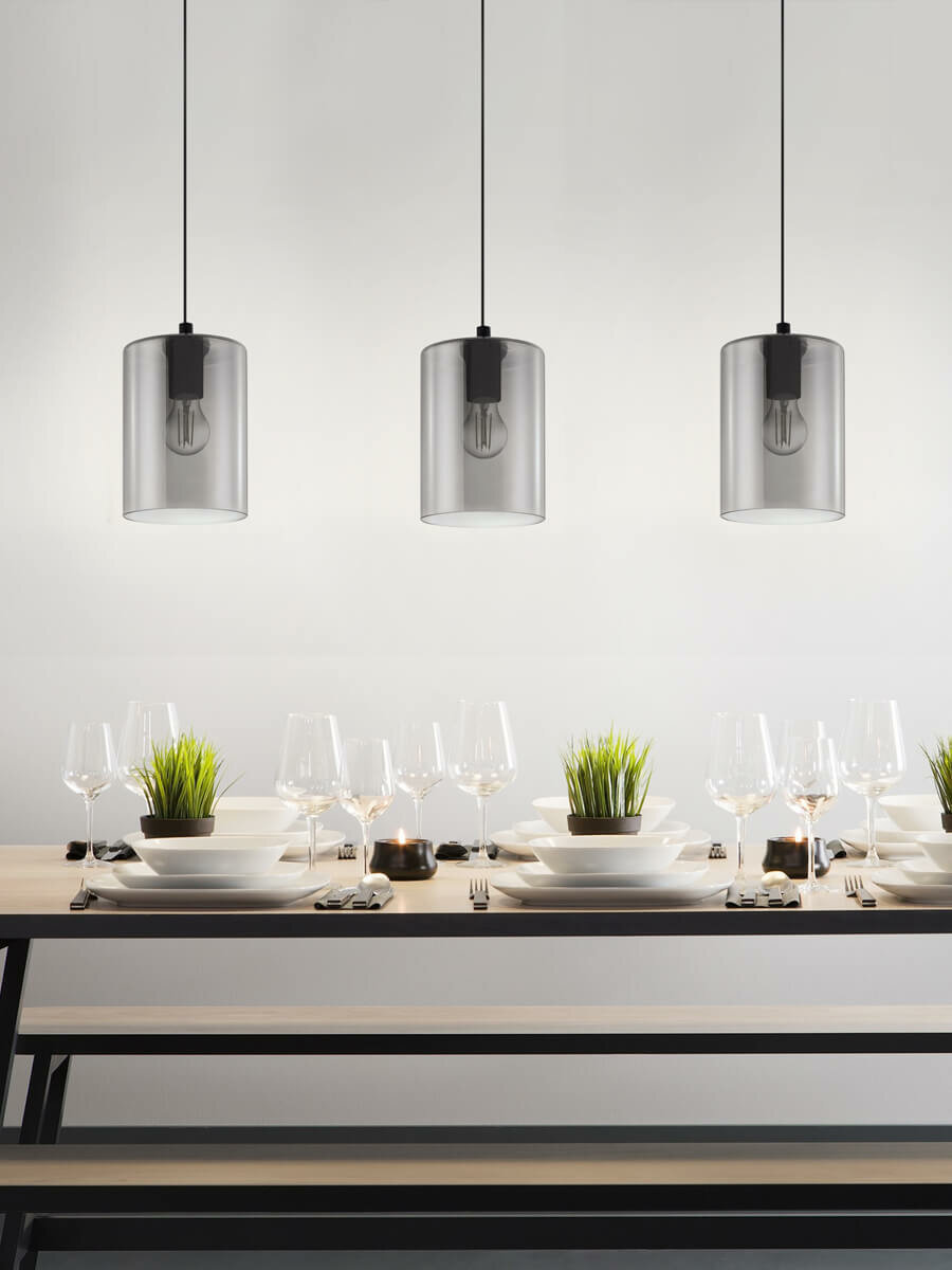 Подвес CADAQUES, 1х40W (E27), Ø180, H1100, cталь, черный /дымчатое стекло, черный-прозрачный