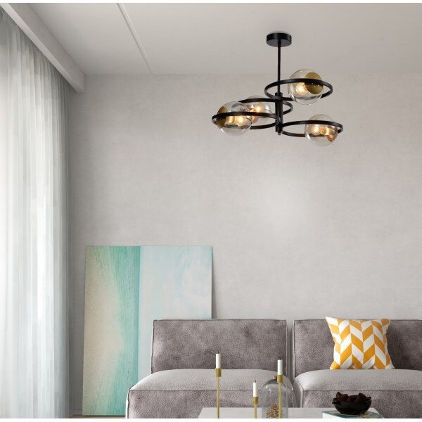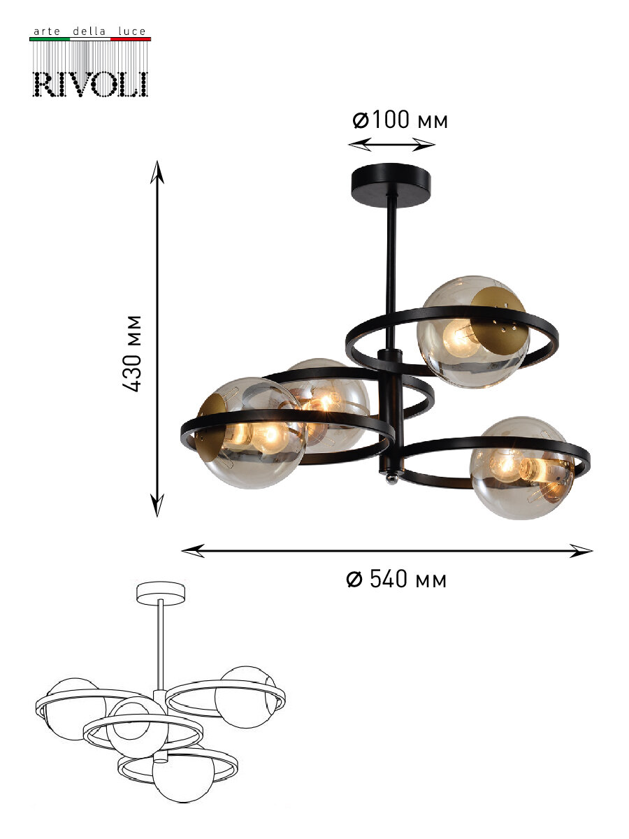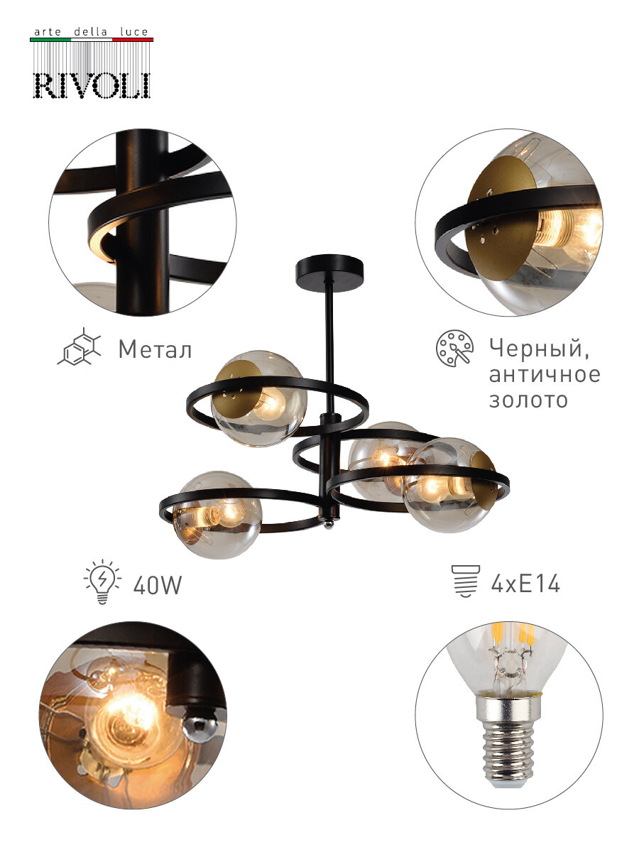 Люстра потолочная Rivoli Gitte под лампы 4хЕ14 40 Вт черный, медь дизайнерская 12м2