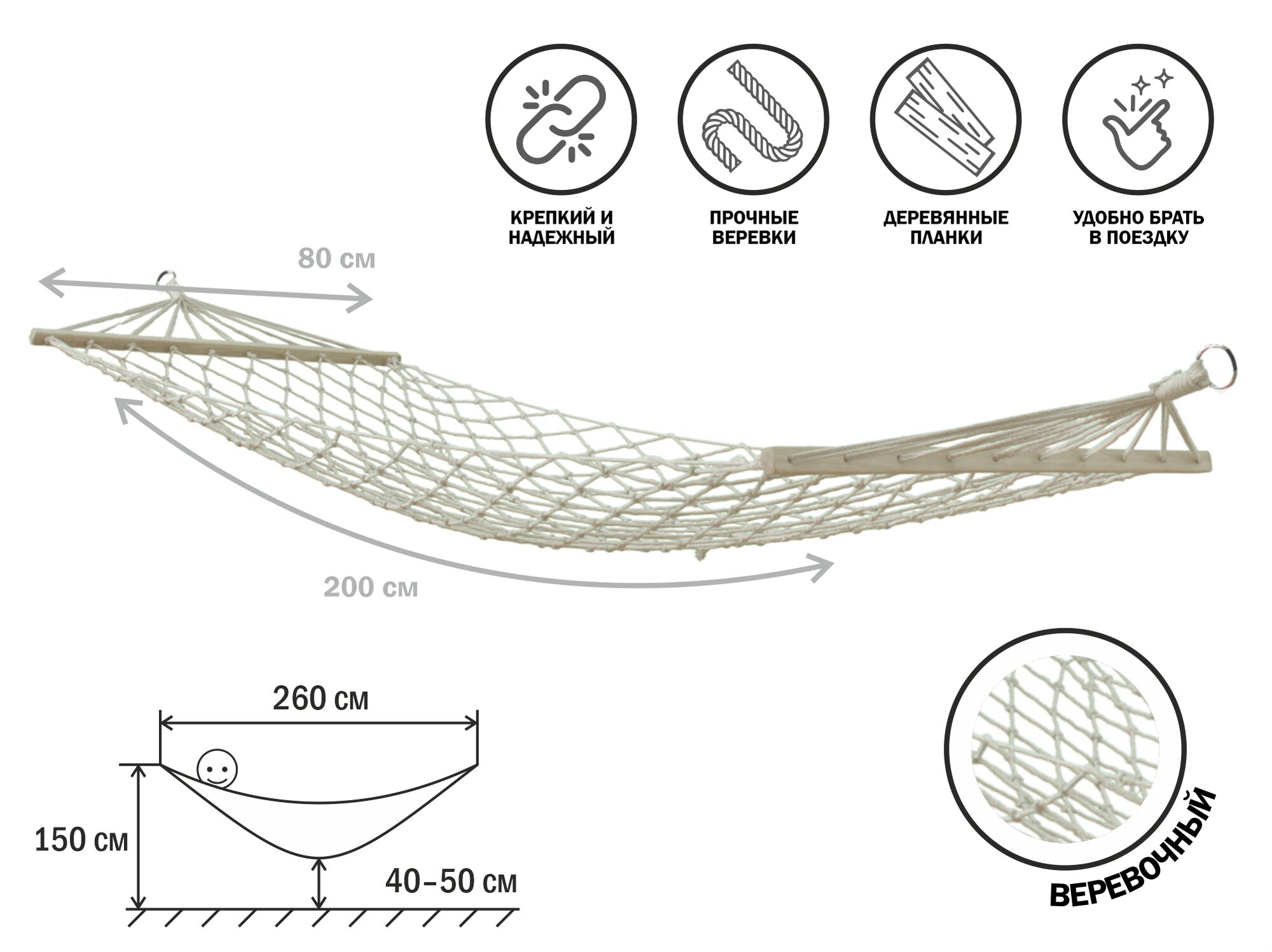 | Минусы: | на верёвке производитель сэкономил. Тянется! Остальное: плетение, рейки, все супер. |