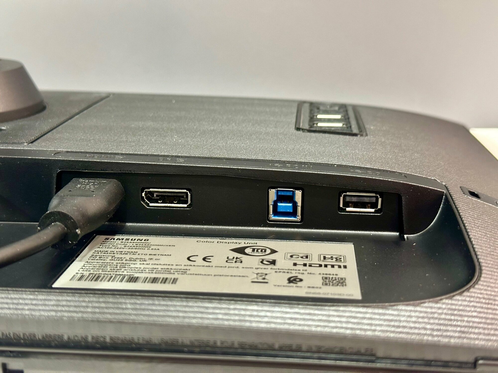 | Плюсы: | В целом нормальное изображение. Хорошая плотность пикселей. QHD при 23.8 дюйма то, что мне было нужно. USB хаб. Крепление для кронштейна 75*75 мне подошло. |