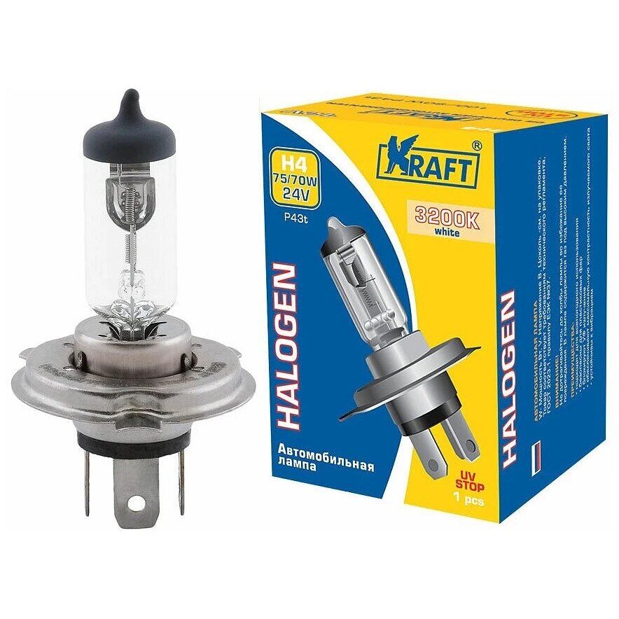 Лампа автомобильная галогенная KRAFT H4 24v 75/70w (P43t) KT 700012 P43t 1 шт.