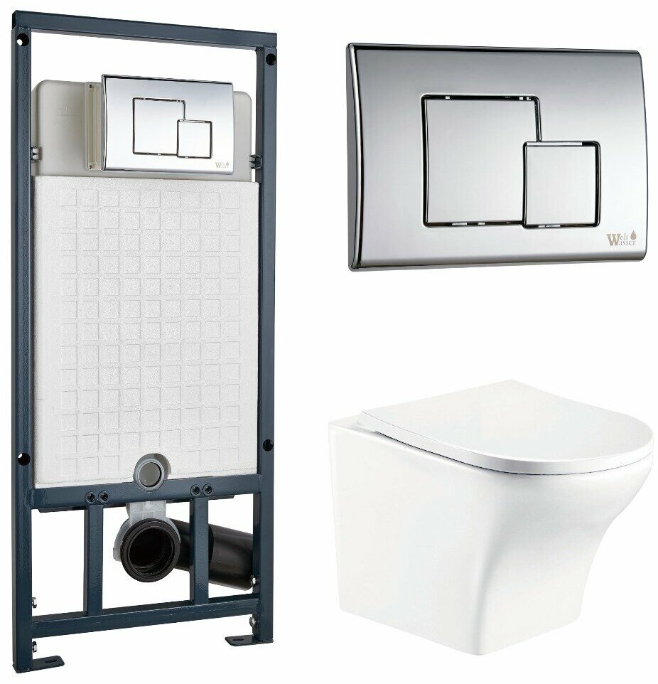 Унитаз с инсталляцией WeltWasser MARBERG507+NESENBACH004GL-WT+MAR507SE-CR