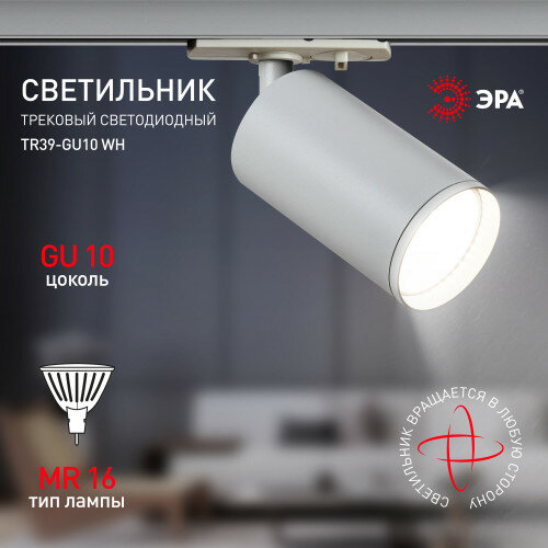 Трековый светильник однофазный ЭРА TR39-GU10 WH под лампу MR16 белый