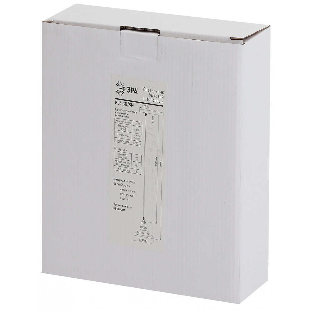 Купить ЭРА PL4 GR/SN Подвес металл, E27, max 60W, d203 мм, шагрень серый/сатин никель Б0037448