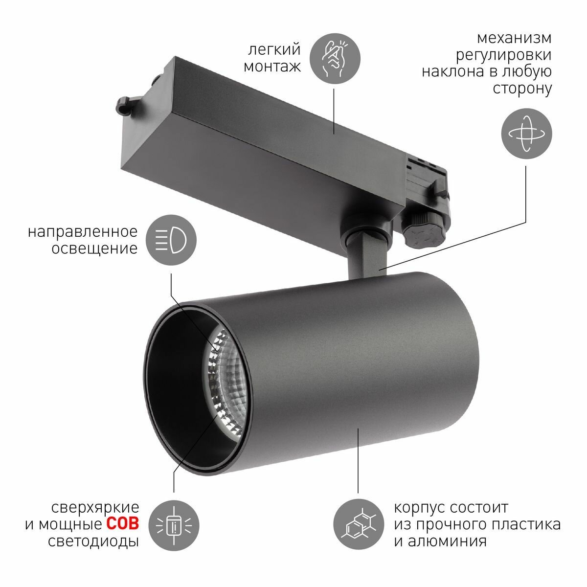 Трехфазный LED светильник 40W 3000К для трека Эра SТR-30-36-30K-B40 (Б0049780) интересное: