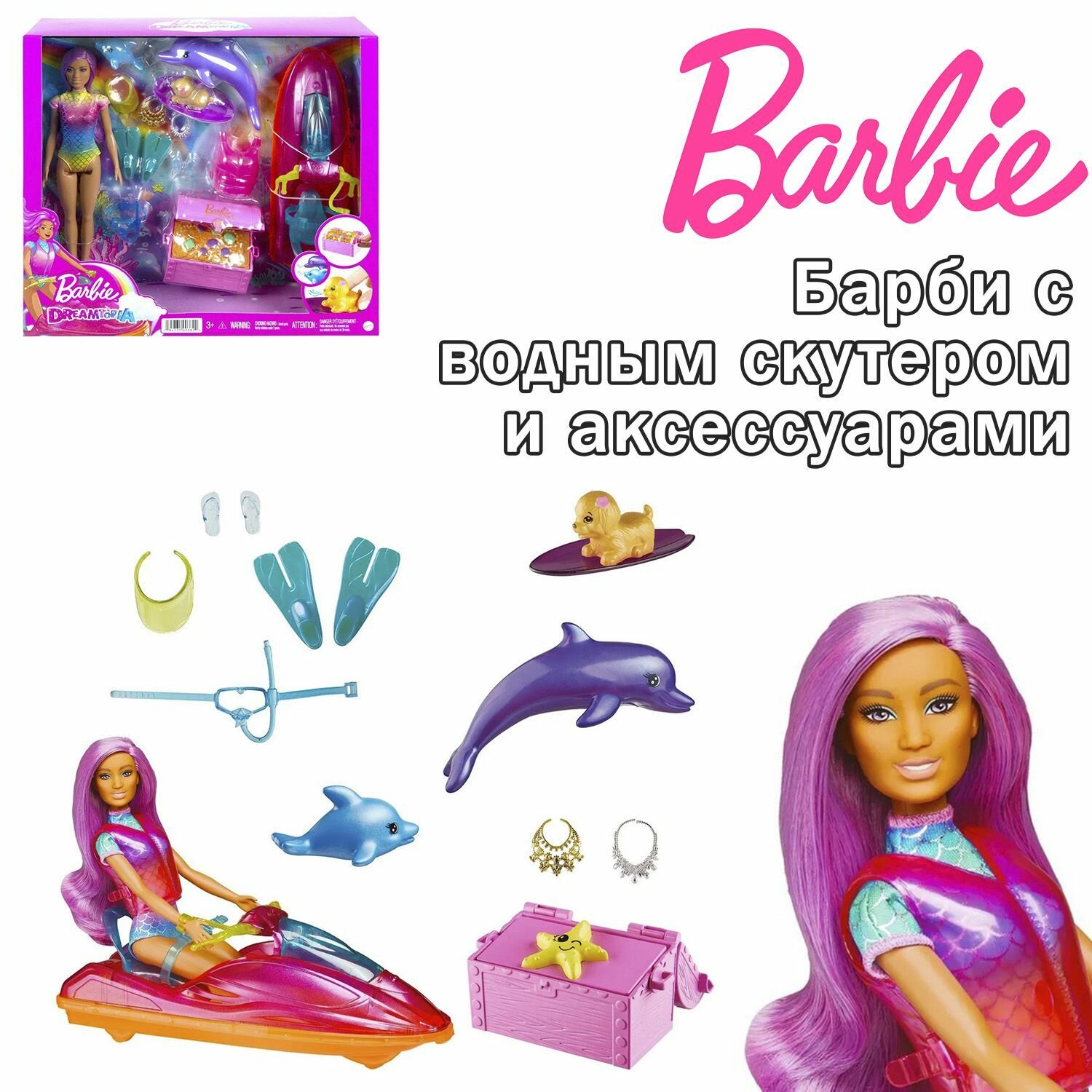 | Дополнительная информация | комплект входит: 1 кукла, 1 гидроцикл, 10 аксессуаров |