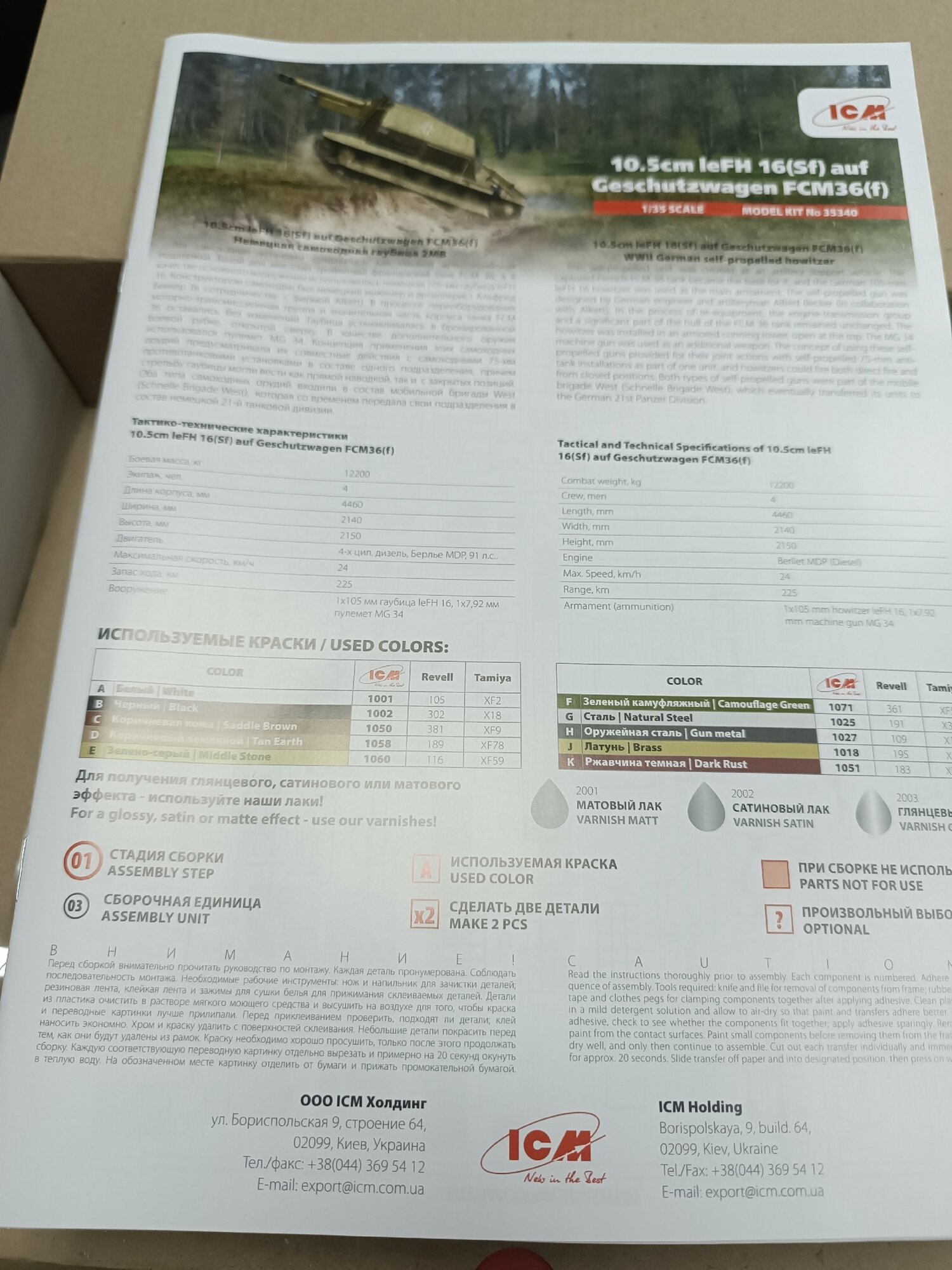 Сборная модель ICM 1:35 35340 Немецкая самоходная гаубица, 10.5cm leFH 16(Sf) auf Geschutzwagen FCM36(f) интересное: