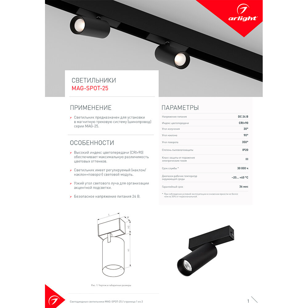 Светильник MAG-SPOT-25-R90-9W Warm3000 (BK, 30 deg, 24V) (Arlight, IP20 Металл, 5 лет) 033677
