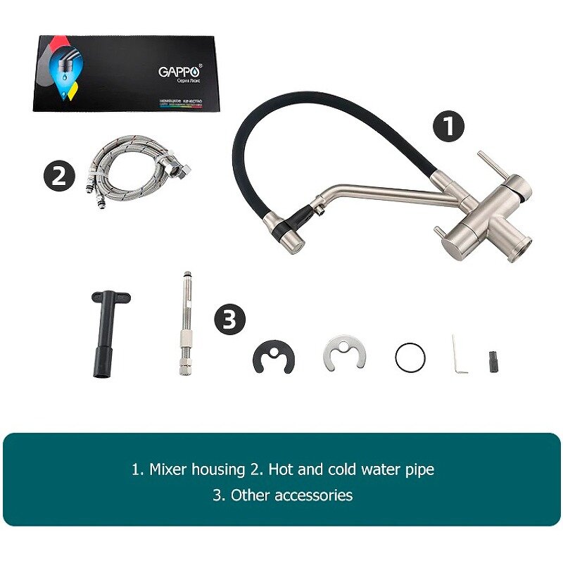 Смеситель для кухни(мойки) Gappo G4398-69, с подключением фильтра, гибкий излив, оружейная сталь