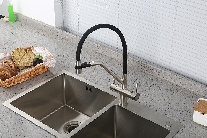 Смеситель для кухонной мойки Gappo G98-66 G4398-66 с гибким, выдвижным изливом и подключением фильтра питьевой воды, черный