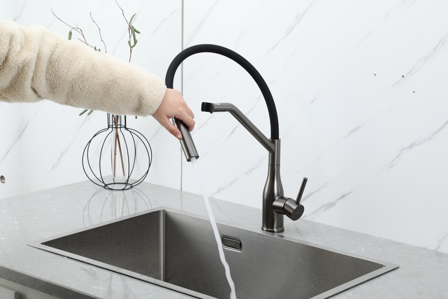 Смеситель для кухни Gappo G4098-19 оружейная сталь, гибкий излив