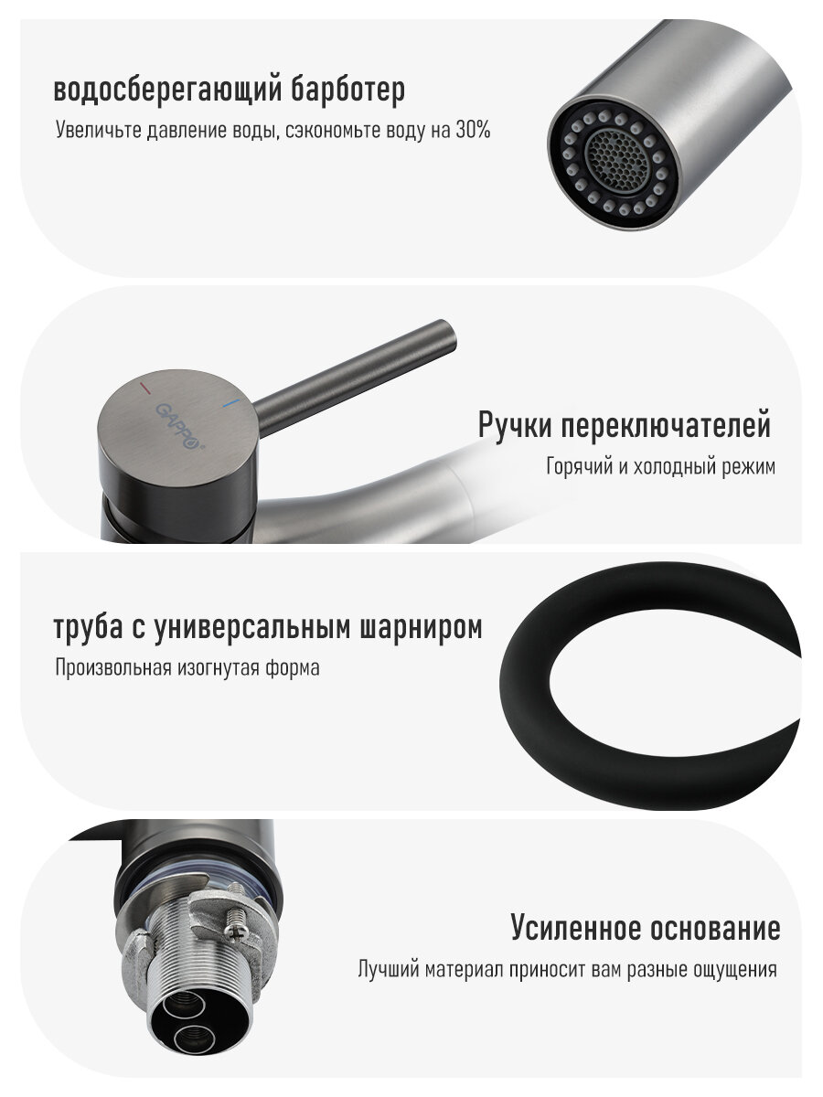 СохранитьСмеситель для кухни Gappo G4098-19 оружейная сталь,черный интересное: