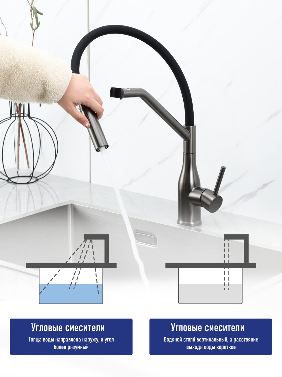 Смеситель для кухонной мойки Gappo G98-66 G4398-66 с гибким, выдвижным изливом и подключением фильтра питьевой воды, черный
