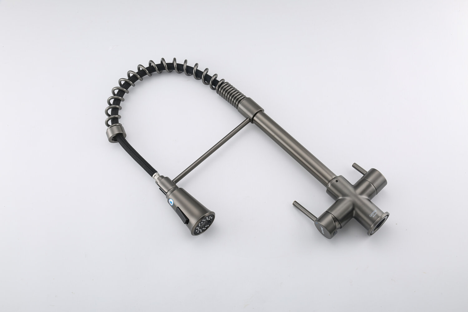 Смеситель для кухни с гибким изливом Gappo G4398-69, оружейная сталь