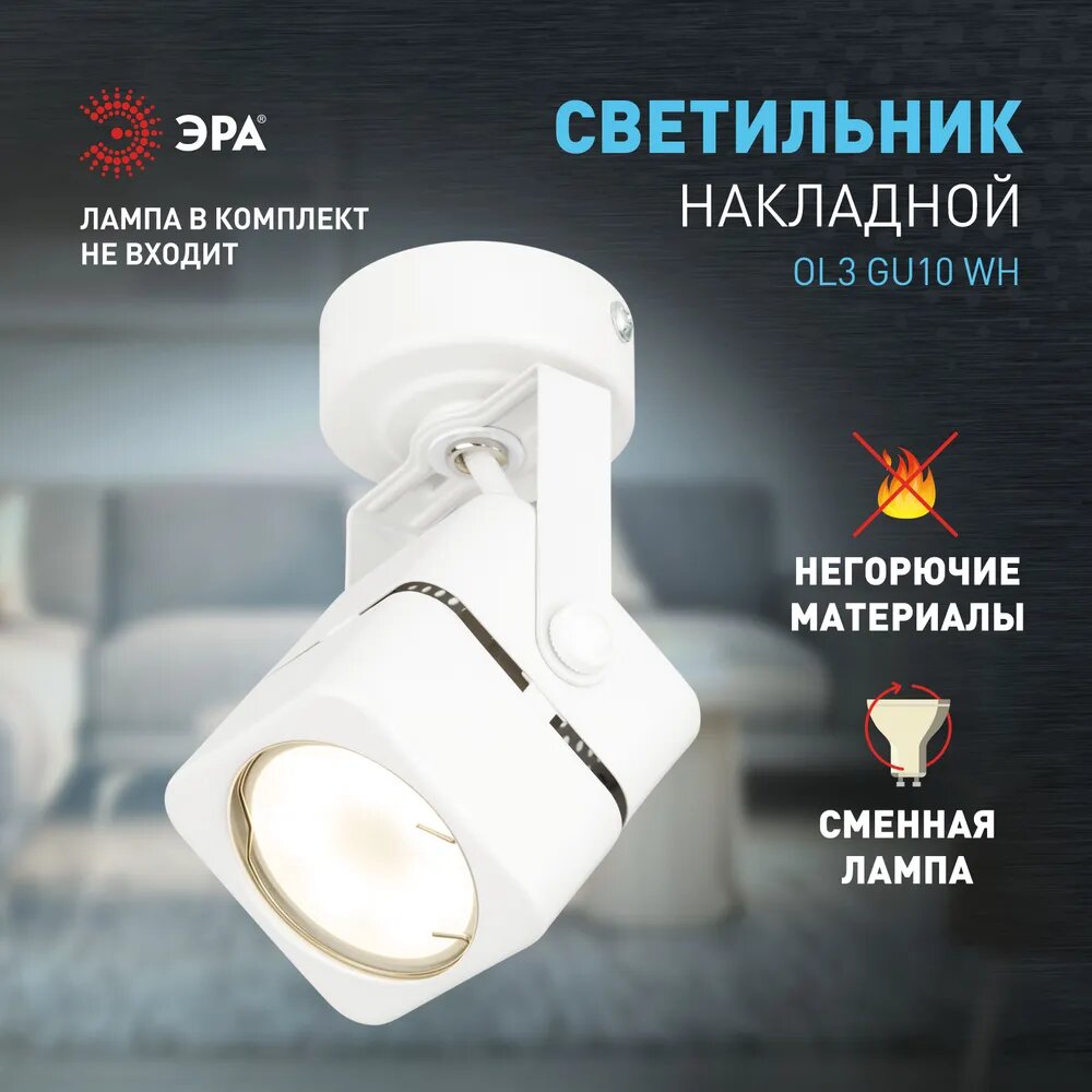 OL3 GU10 WH Подсветка ЭРА Накладной, белый (50/900)