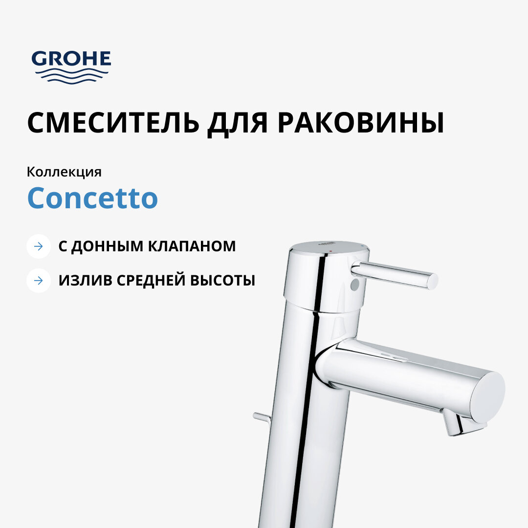 Grohe Смеситель для раковины Grohe Concetto 23450001 со сливным гарнитуром