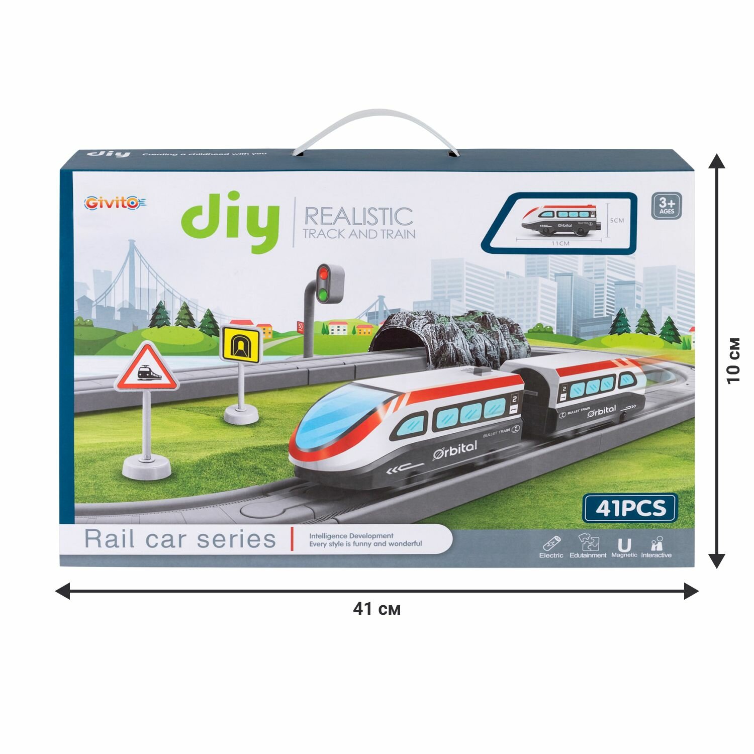 Купить Детская железная дорога Givito "Мой город, 41 предмет", на батарейках, G201-009