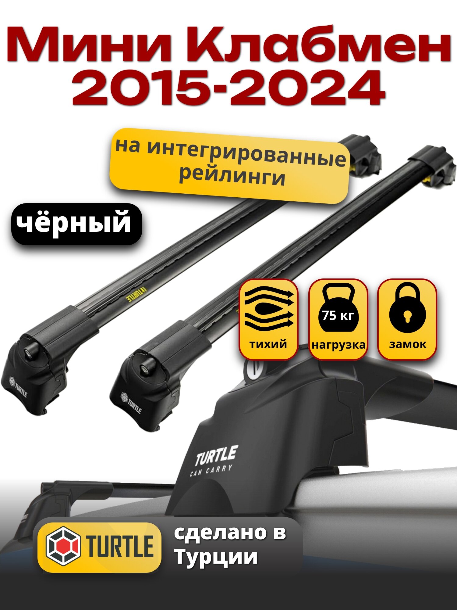 Багажник на крышу Мини Клабмен 2015-2024 на интегрированные рейлинги, черный, Turtle Air-2 интересное: