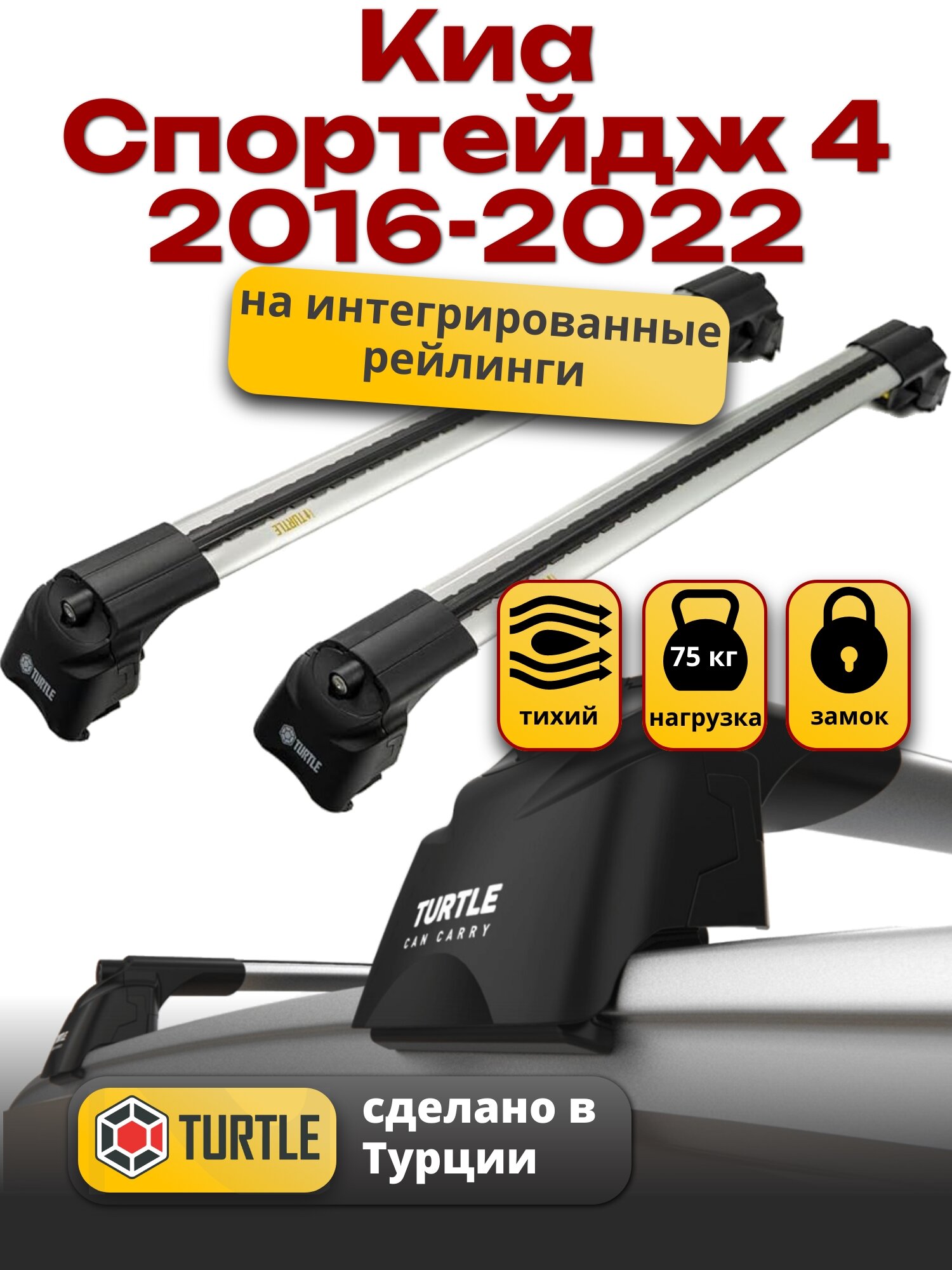 Багажник на крышу Киа Спортейдж 4 2016-2022 на интегрированные рейлинги, Turtle Air-2 интересное: