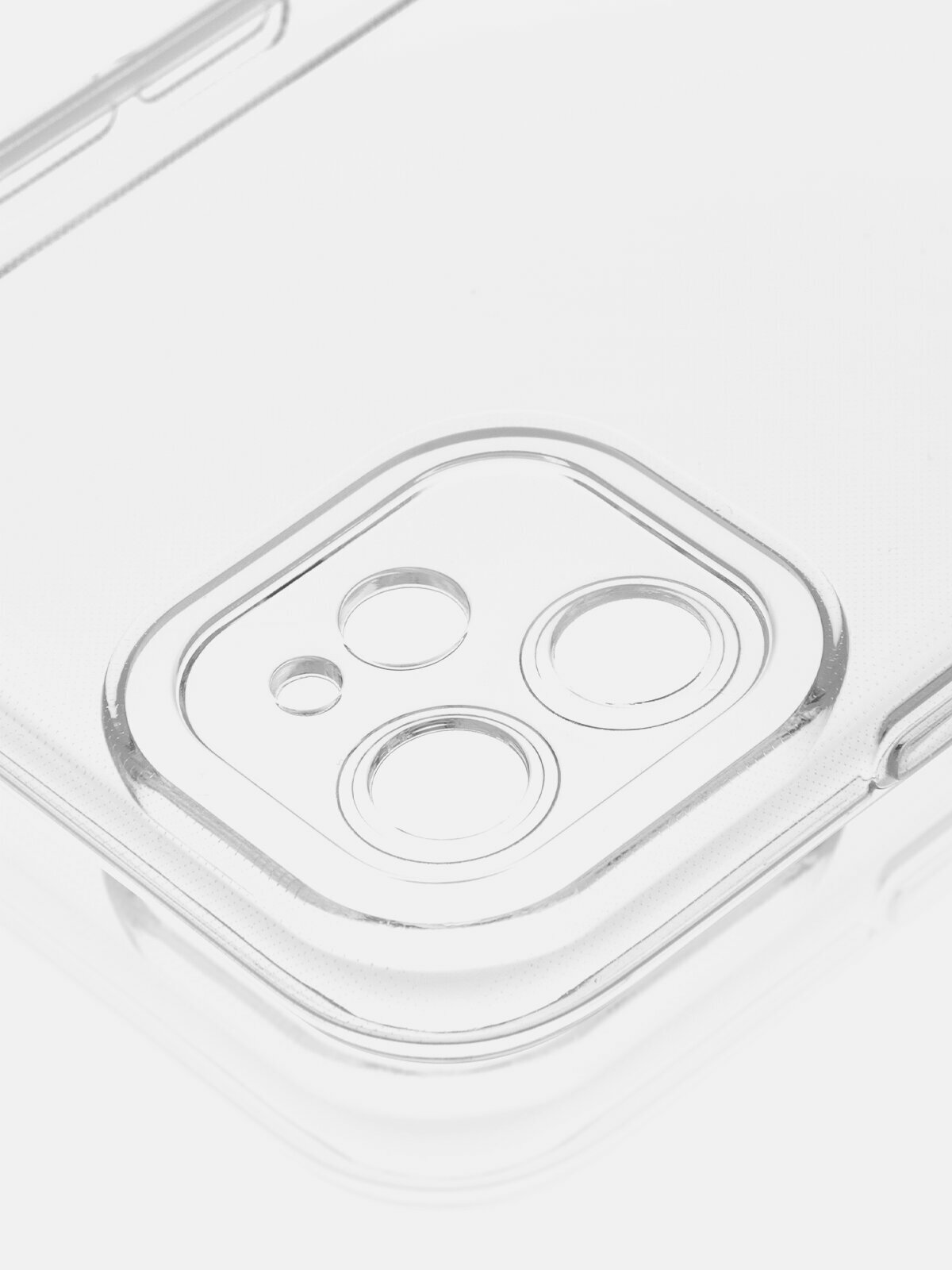 Защитный Чехол на Apple iPhone 11 (Эпл Айфон 11) с кармашком для карты, противоударный чехол ROSCO, защита модуля камер, силикон накладка прозрачный