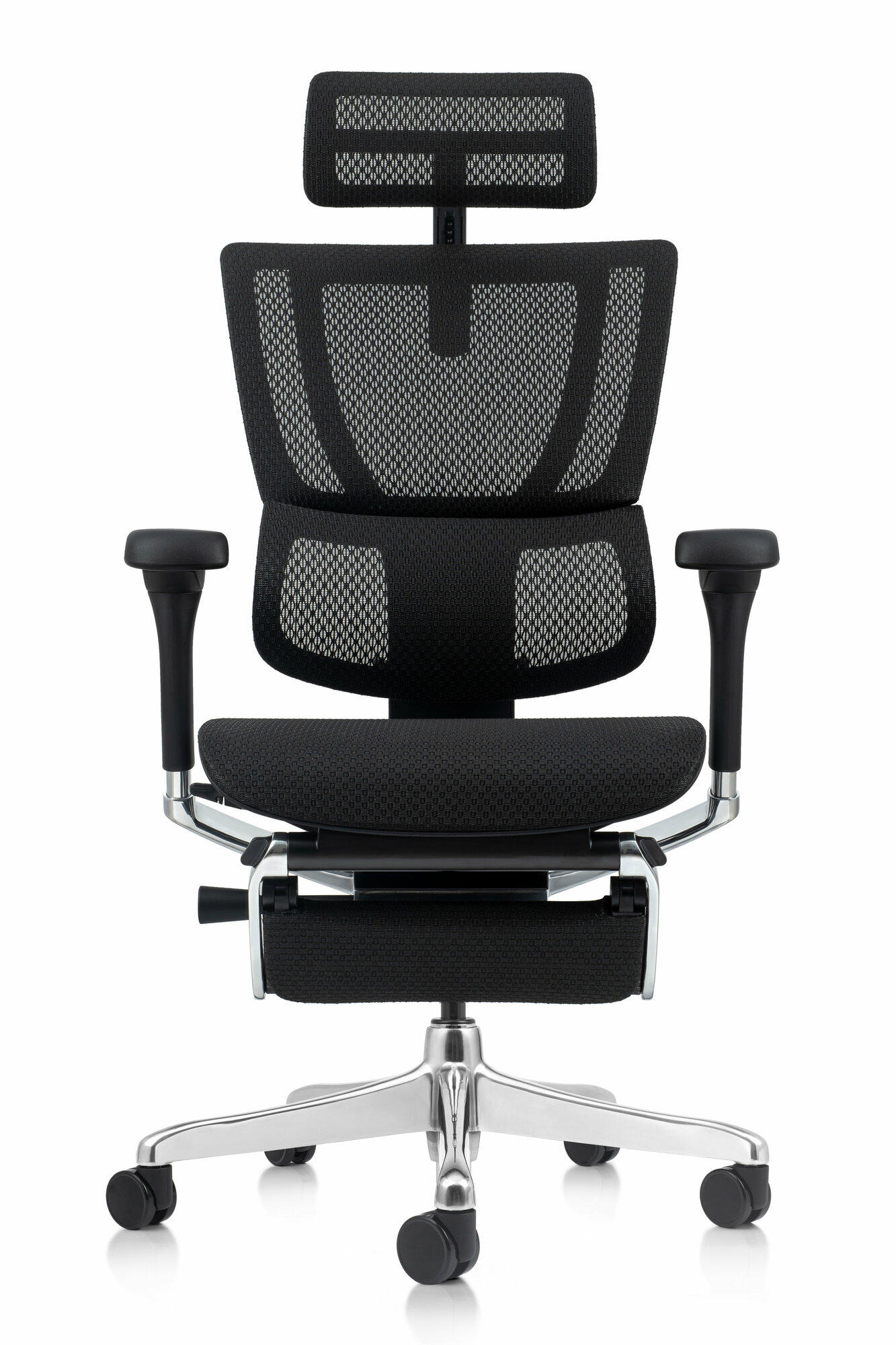 Эргономичное кресло Falto Enjoy Elite 2 с подножкой, черный каркас/сетка черная