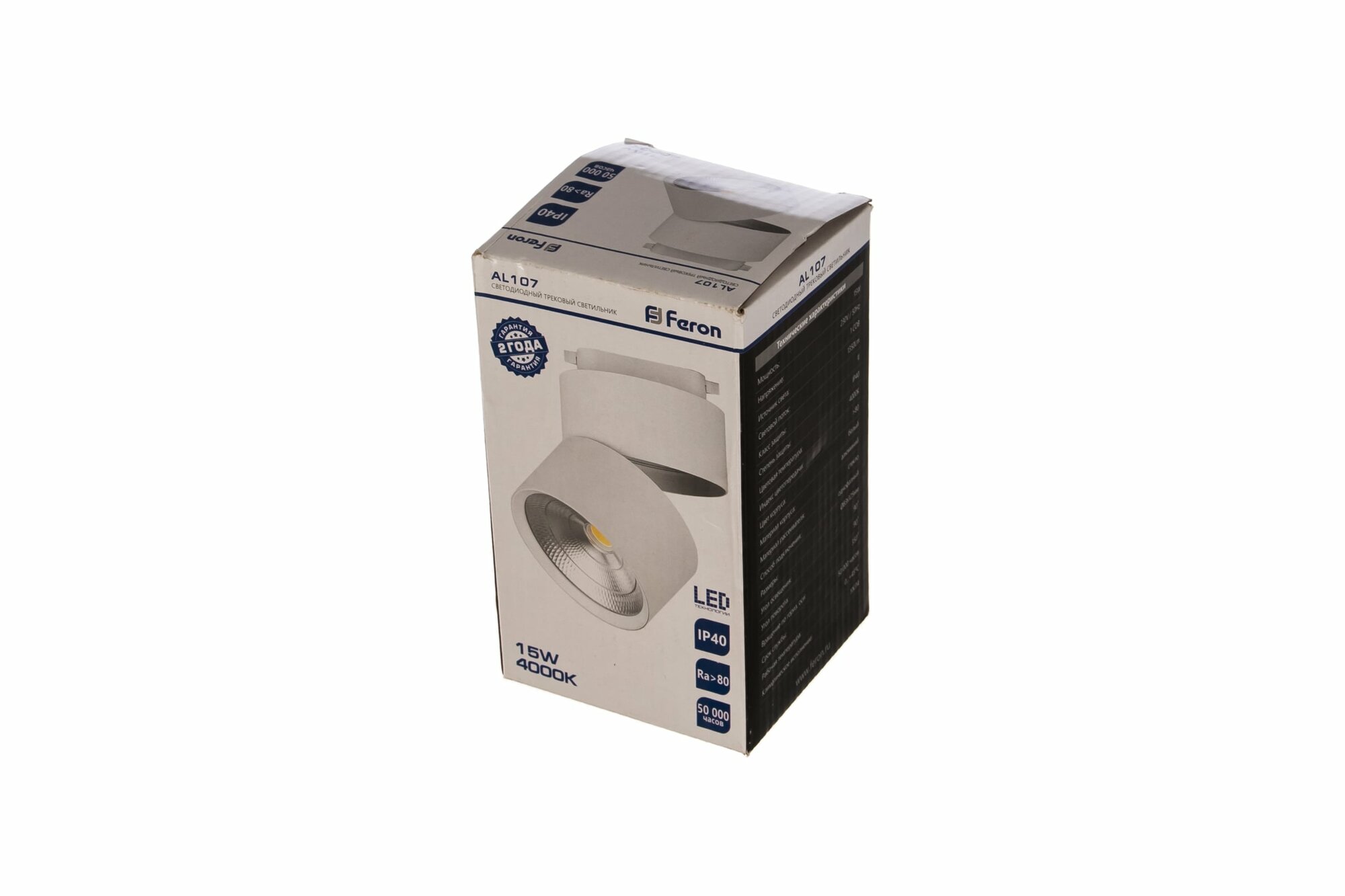 Светодиодный светильник Feron AL107 трековый однофазный на шинопровод 15W, 90 градусов, 4000К, белый