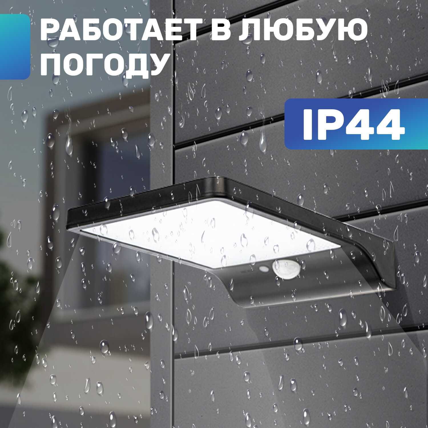 Rexant фонари 602-235 светильникпрожектор AGE 3 режима работы на солнечной батарее, датчик движения плюс датчик освещенности, кнопка вкл выкл герметичная фасадная, LED COB монта