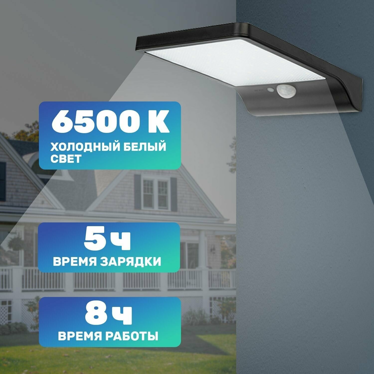 Светильник NEW AGE на солнечной батарее датчик движения; освещенности кнопка вкл/выкл герметичная фасадная 3 режима работы LED COB Lamper 602-235